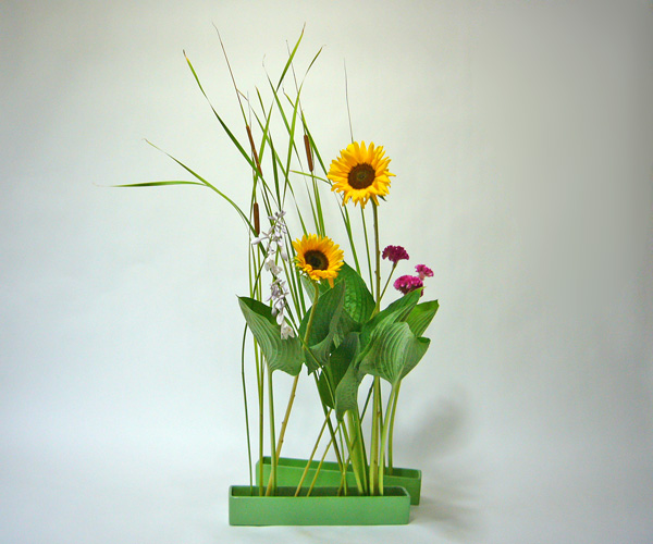 | Material | 姫蒲(ひめがま)、向日葵(ひまわり)、鶏頭(けいとう)、擬宝珠(ぎぼうし) |