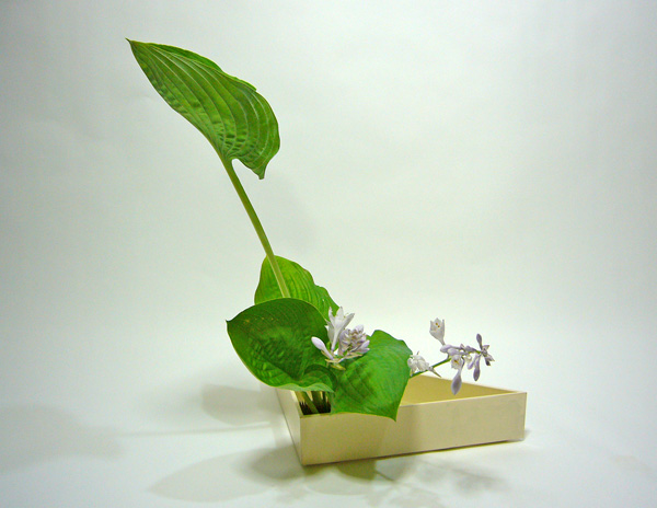 | Comment | ぎぼうしの力強い面を集めて、器との色合いを出しました。 細い、違った線を、中に通して動きを意識しました。 |