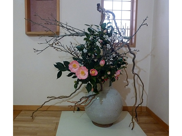 | Comment | ピンクや白の椿に、苔むした梅。 春を迎えるギリギリまで寒さに当てられた花々が生き生きとしてきました。 力強く、春を感じる作品になりました。 |
